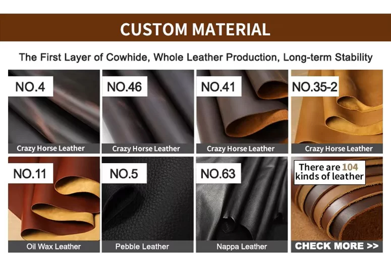 Terbuat dari kulit berkualitas tinggi berbutir penuh atau kulit asli, memiliki tekstur alami, permukaan yang lembut, serta daya tahan yang lama seiring berjalannya waktu, ditambah dengan lapisan pelindung yang sesuai dengan usianya.